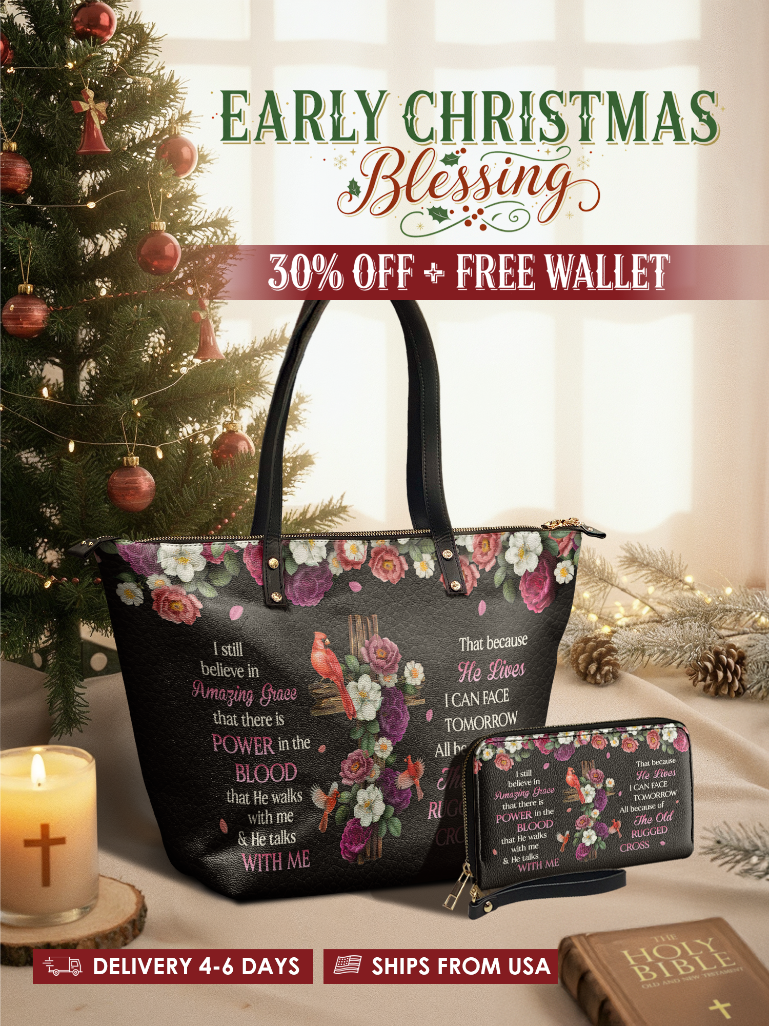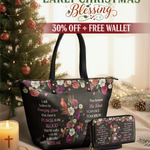 This tote bag is spacious and practical, easily fitting 3 large print Bibles, a 13" laptop, books, and daily must-haves.