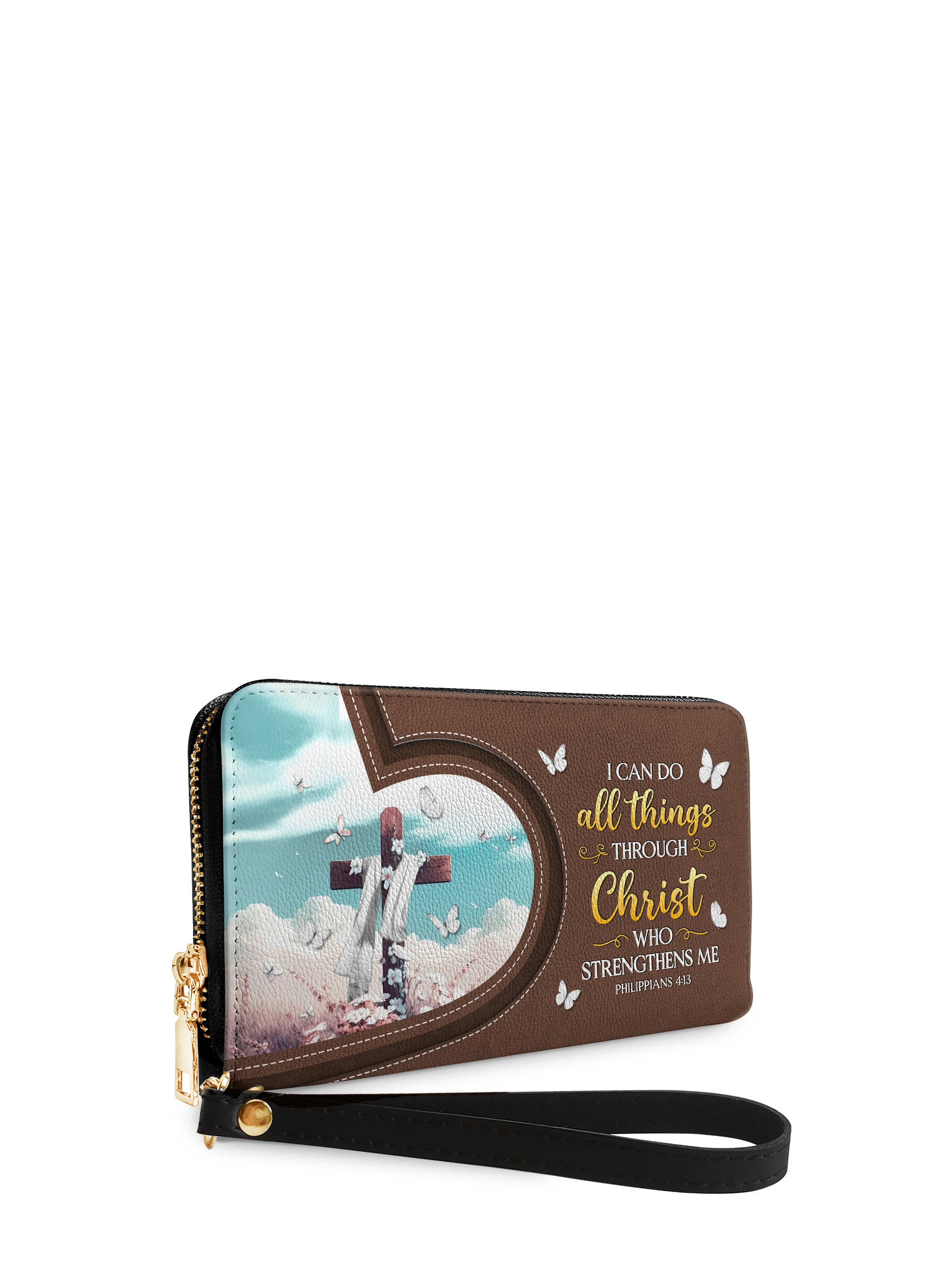The secure zipper closure keeps everything safe, while the detachable wrist strap offers effortless carrying—perfect for work, travel, or a chic night out.