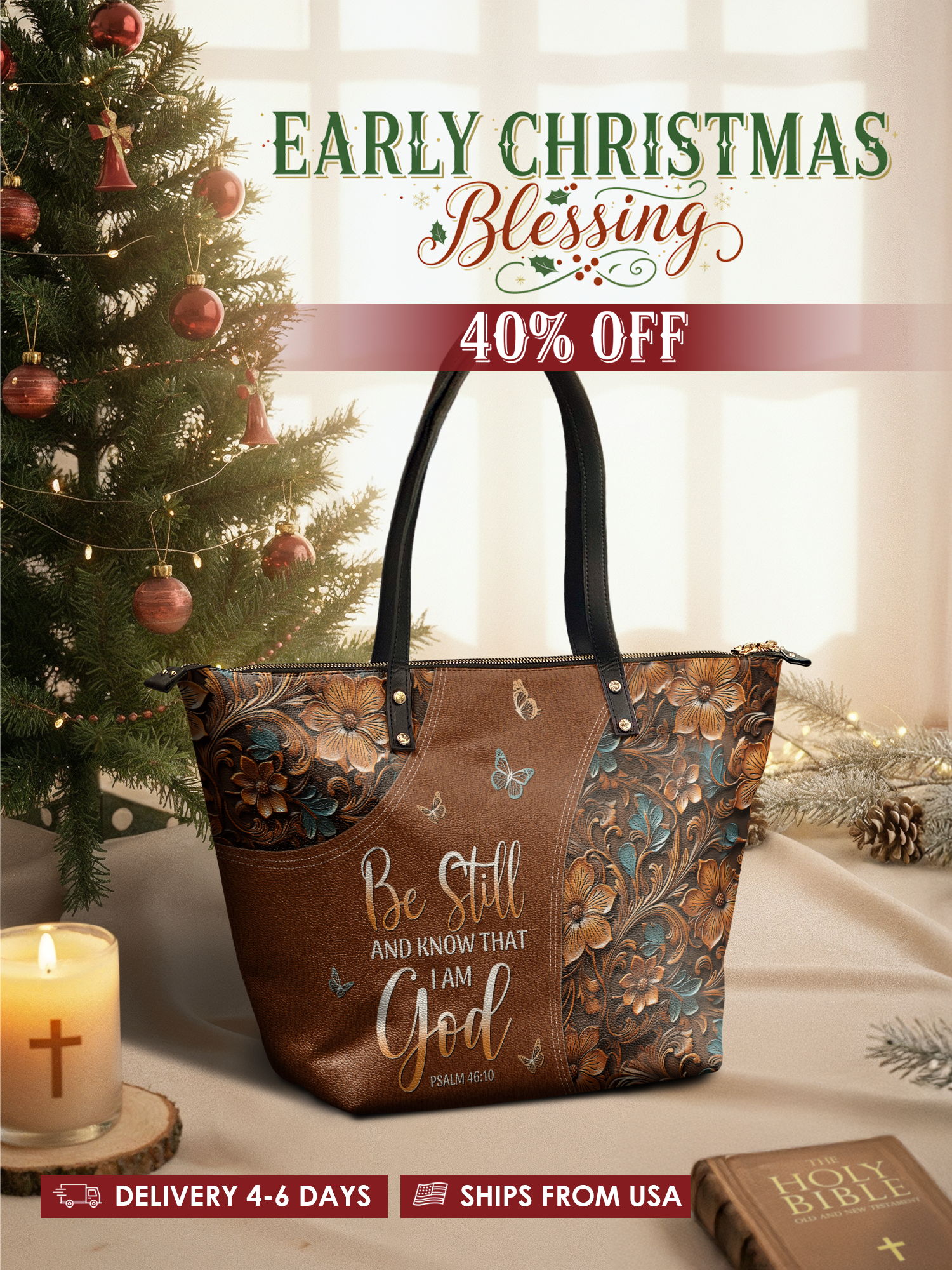 "Stillness" - Psalm 46:10 Leather Tote Bag