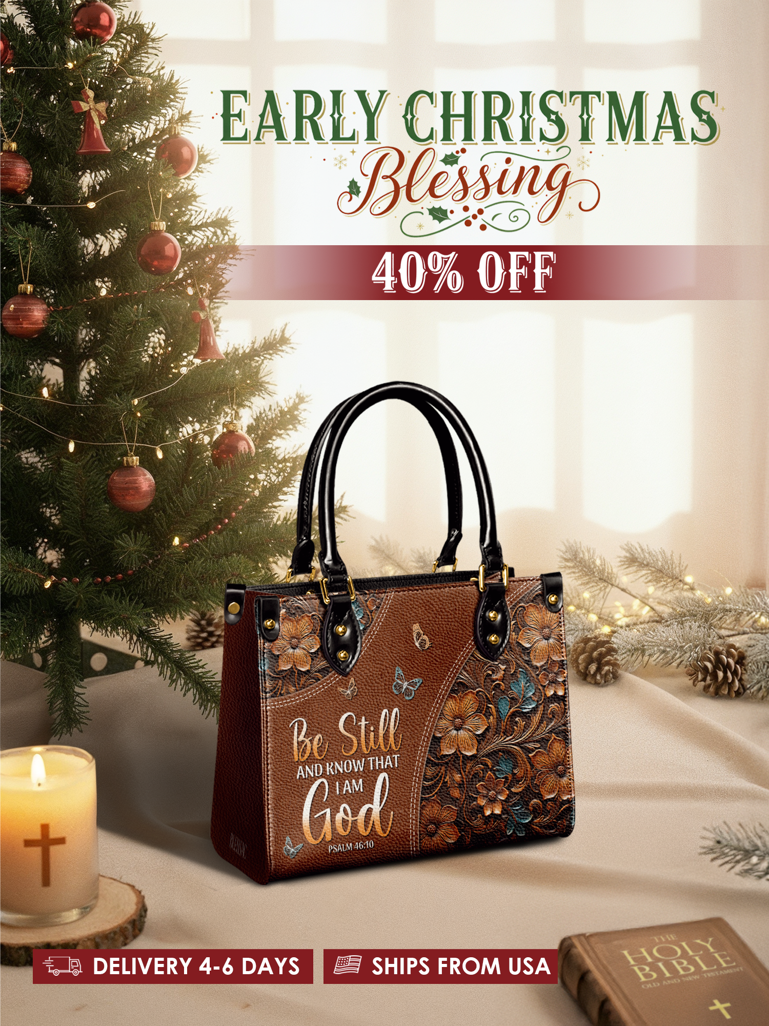"Stillness" - Psalm 46:10 Small Leather Handbag