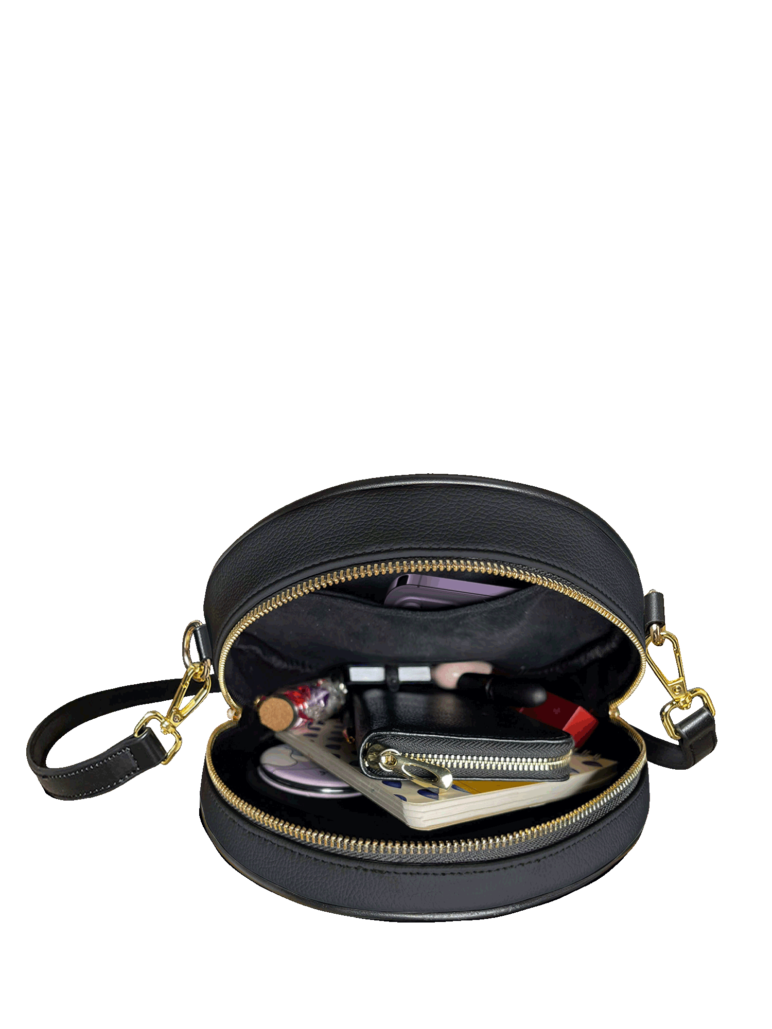 This circle crossbody bag is crafted from premium vegan leather or luxurious Italian leather for a soft, durable finish that lasts.