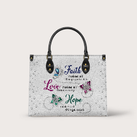 I just love my new bag! The vegan leather is very soft and pliable, which I love! I have already used my bag for Bible study and will also be using it on Sunday's for my GriefShare class. I am able to fit all my materials for both applications which gives me a comfortable & beautiful way to share my faith with others. I will love carrying a special verse on my bag that God gave me from Psalm 46 while walking a painful journey of grief. "Be still and know that I am God." He had some very special things to share with me when I got still in His presence.