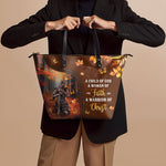 This tote bag is spacious and practical, easily fitting 2 large print Bibles, a 13" laptop, books, and daily must-haves.