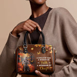 I just love my new bag! The vegan leather is very soft and pliable, which I love! I have already used my bag for Bible study and will also be using it on Sunday's for my GriefShare class. I am able to fit all my materials for both applications which gives me a comfortable & beautiful way to share my faith with others. I will love carrying a special verse on my bag that God gave me from Psalm 46 while walking a painful journey of grief. "Be still and know that I am God." He had some very special things to share with me when I got still in His presence.