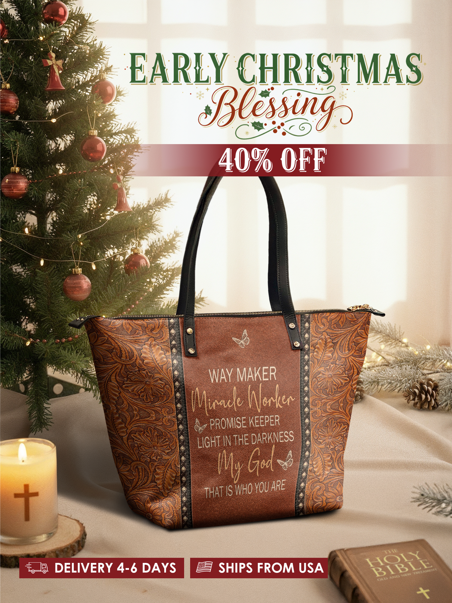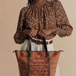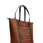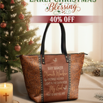 This tote bag is spacious and practical, easily fitting 2 large print Bibles, a 13" laptop, books, and daily must-haves.