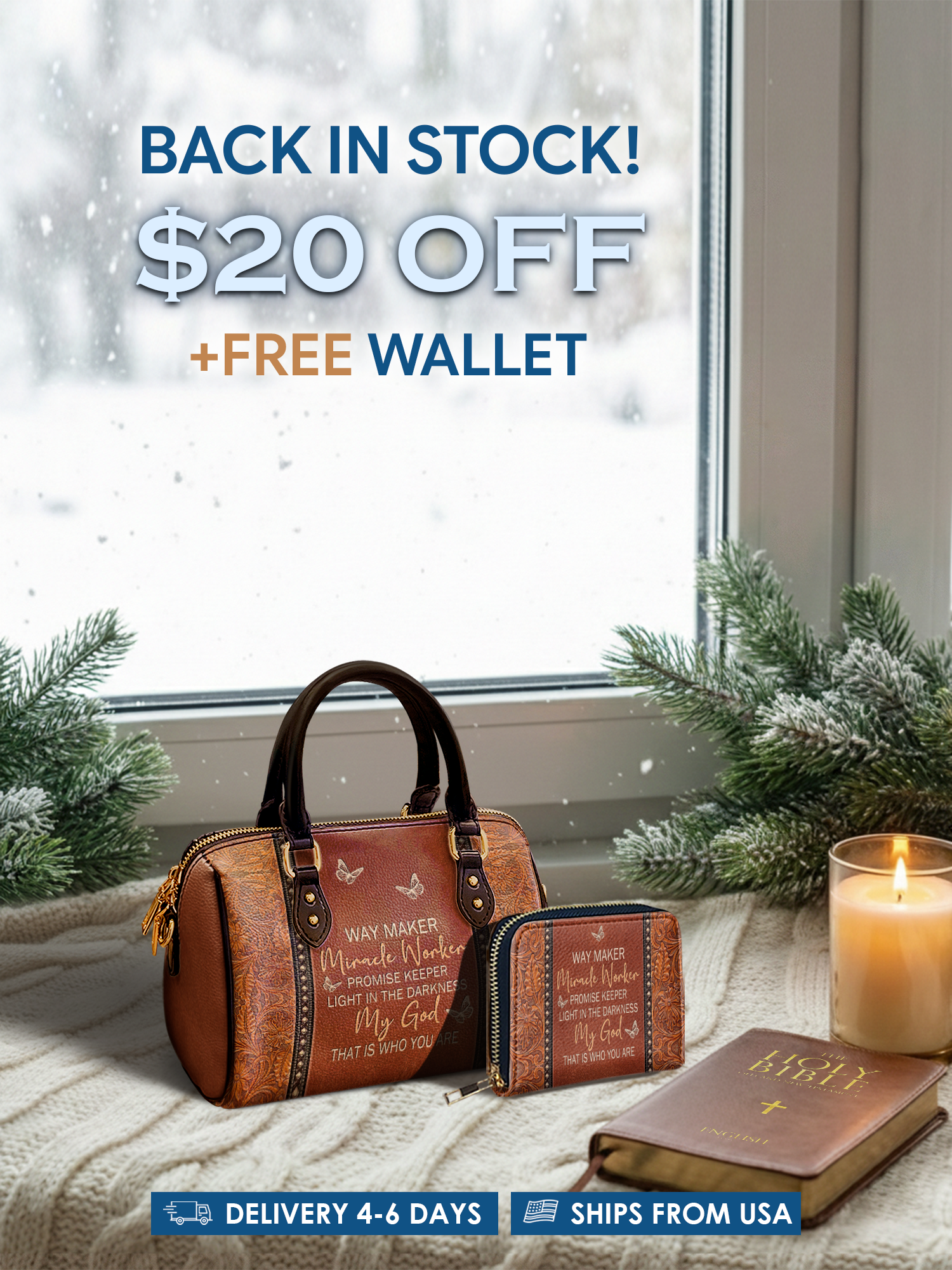 All of our handbags and wallets are shipped directly from Goodyear, Arizona. You’ll receive tracking once your order ships.
